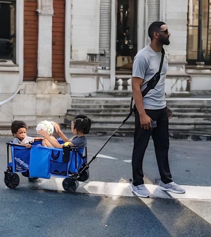 🔹 Hands-Free Freedom – Carry chairs, coolers, or hold little hands while your wagon follows.