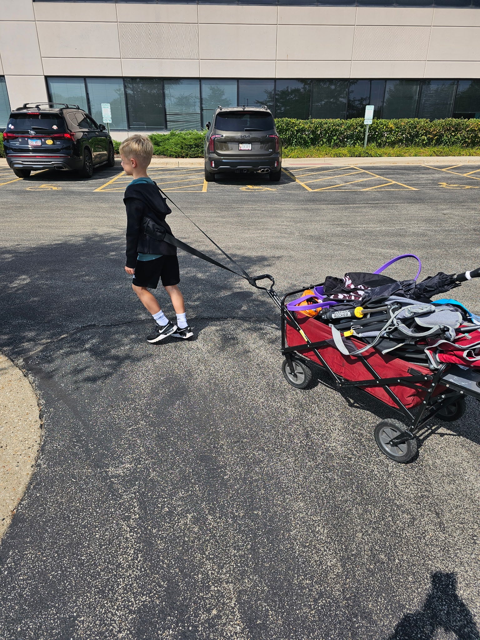 You’re enjoying the hike — not fighting the wagon. 🌄